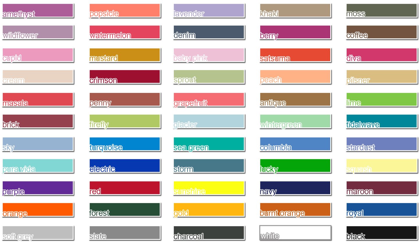 All of our garment dyes are made to order. If you do not see the specific color you need, we offer custom color matching services.
